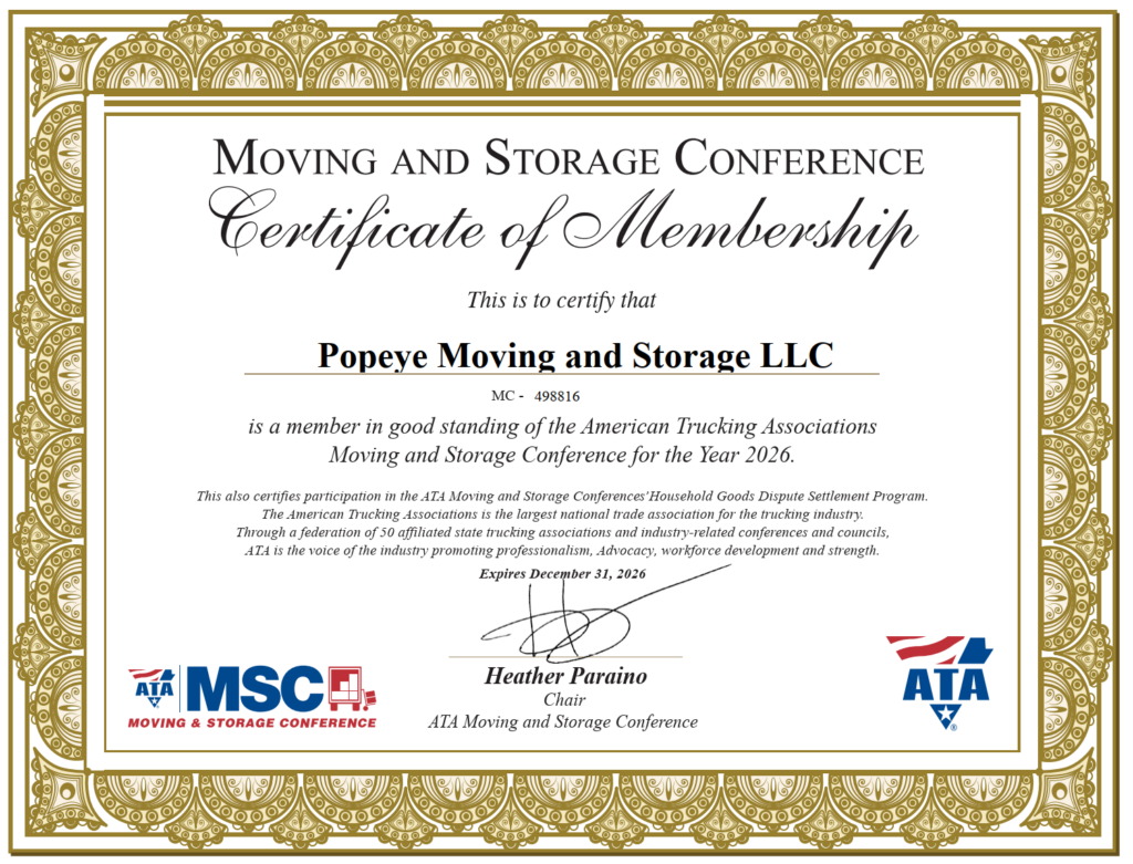 We recognize that moving your belongings and cherished possessions can be an emotional experience. You want to choose movers with a proven track record – a company you know you can depend on – to reduce the stress of moving. To help you gain insight into how our customers view Popeye Moving, please read the testimonials and letters of recommendation from some of our clients.